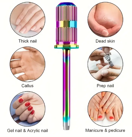 A Broca de Suporte para Recargas de Lixa está projetada para suportar recargas de grão grosso, médio e fino. Esta broca é ideal para facilitar a remoção do produto, limar e moldar a unha de forma a obter um acabamento profissional.