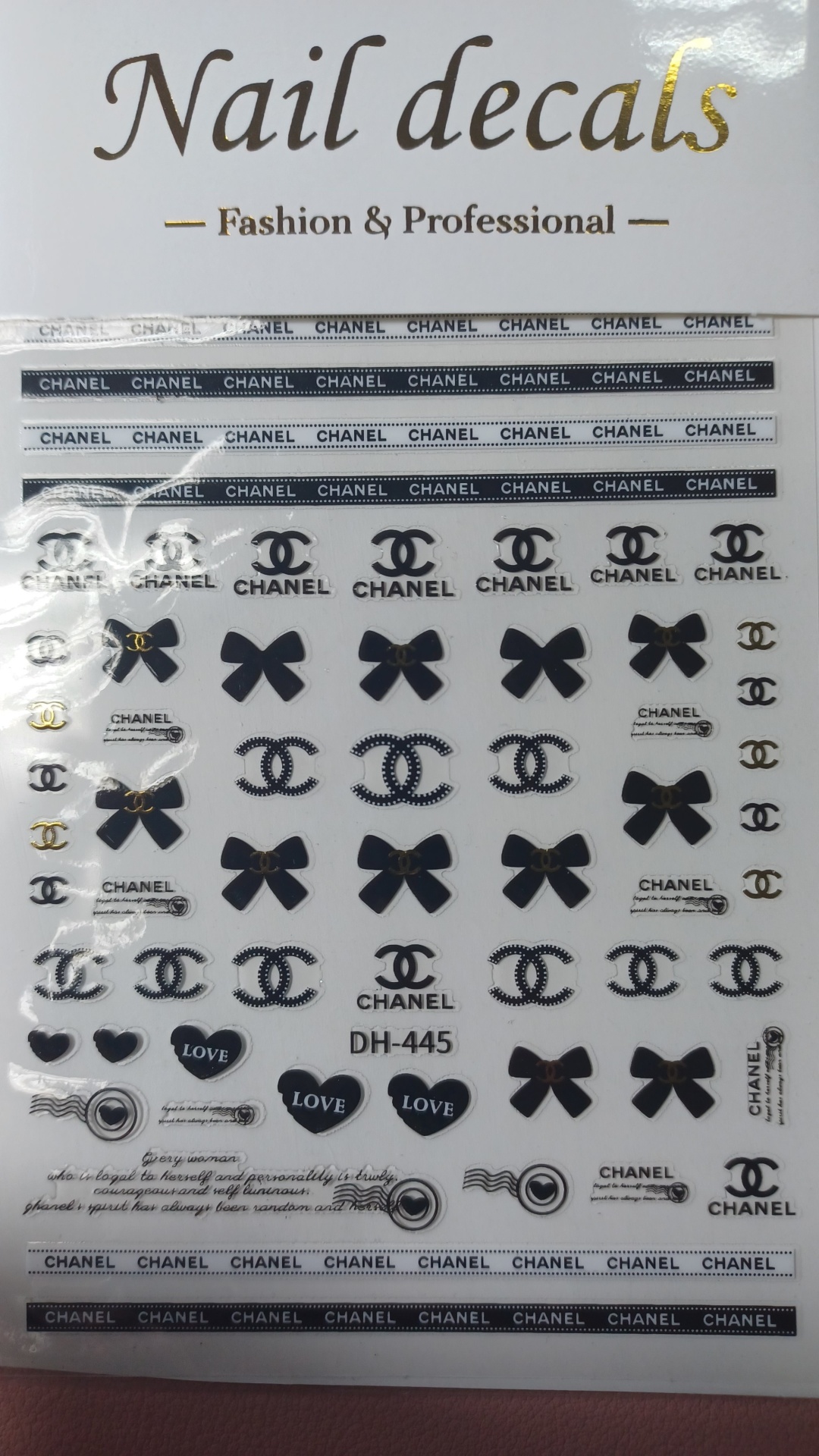 Folha de autocolantes para unhas com logotipos e desenhos estilo Chanel