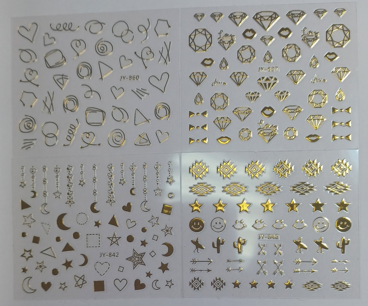 Folhas de autocolantes dourados para unhas com diversos desenhos